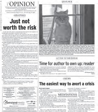 In general, it was disappointing to see so many cartoons with blatantly obvious political stances that had nothing to do with local issues. In addition, a lot of the newspapers submitted in this category seemed to have problems printing black and white photos. The end results were very muddy and difficult to view.