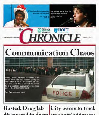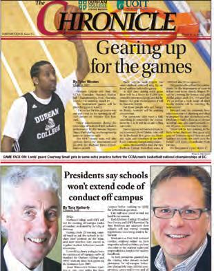 The Chronicle had the best sports section by far and, at times, looks and feels the most like a community paper. The content is relevant to the college and the community, supported by clean layout that doesn’t push any limits. More features and better photos would improve it overall.