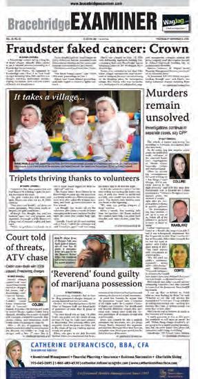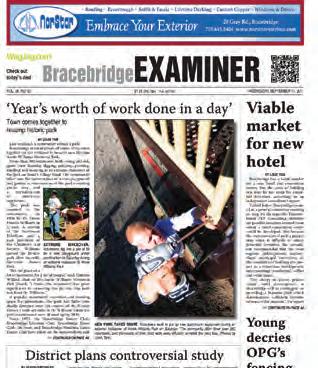 Bracebridge Examiner contains an excellent mix of hard news, features, sports and outstanding photography. Attractive ads and an appealing layout provide the public with a pleasant read.