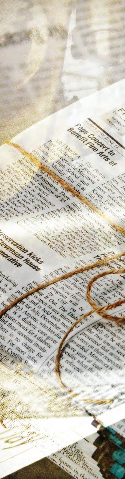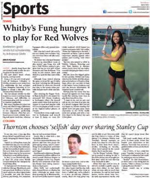 It was an interesting 75 entries, from standard interviews with popular musicians passing through town to profiles of locals overcoming challenges in an admirable way. It was evident the submissions came from new journalists and veterans alike, but the common denominator that links them all is the passion behind the writing. This is very encouraging in this age of newspaper doomand-gloom. While there were no significant features that stood out from the others, the focus on profiling those who contribute to the arts in the community provided very enjoyable reading.