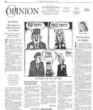 Tucked in a handy format, this gem of a newspaper can pride itself on careful use of space and colour. The photos are striking and the stories are interesting. There is a good balance of hard news with community content. One suggestion is to keep all sections together – hard and local news, editorial, opinion, regional news, etc. This will maintain consistency and prevent confusion among readers.