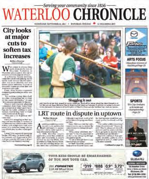 Clearly labeled community content, clean layout, vibrant opinions and a well-defined sports section are all qualities that put the Waterloo Chronicle ahead of the pack in this category. The photography is sharp, providing impact and imagination. Overall, a fine packaged newspaper serving its community well.