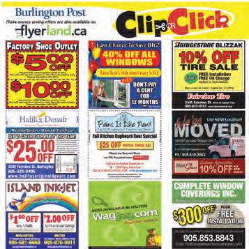 Clip or Click – The Burlington Post has a good cross-promotion with flyerland.ca in its “Clip or Click” pages. The idea extends the reach of the newspaper on the web. The logo is well designed and the designer has made some effort in choosing an appropriate, modern typeface.