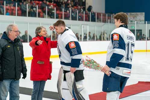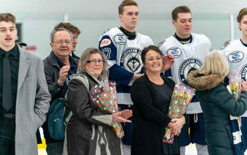 For the second game of the double-header weekend on Feb. 23, The Huskies friends and families were invited to the ice, to partake in a special ceremony for the team members who are graduating. The tight-knit team has spent an impressive season together, and coaches were eager to celebrate the players, and all they have done. Following the ceremony, the team went on to beat the Stouffville Spirit 4 - 3. The playoff season starts this week. Stay tuned for more coverage. /TIM YANO staff photographer