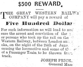 An order was also passed by the council for an underground tank to be placed at the corner of Station and Petrolia Streets to hold 1,000 barrels of water. This was the largest tank the town had ever had. The Great Western Railway, near whose property it was located, donated $150 towards its construction.
