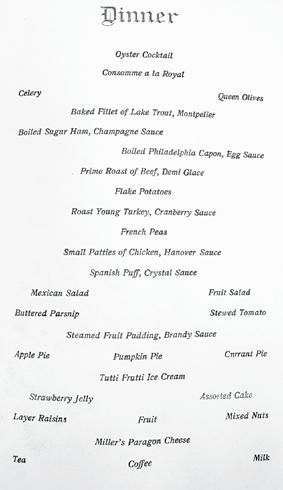Glancing through the bills from the Iroquois Hotel at the Lambton County Archives gives a real flavour of what this hotel was like. Each special event – Christmas, New Years, St. Andrew’s Day – required a special menu. The foods were exotic and wouldn’t be found in today’s establishments in Petrolia. And it was also clear the people of Petrolia enjoyed a pour or two or three. Of the bills preserved by the archives, liquor bills are by far the most numerous.