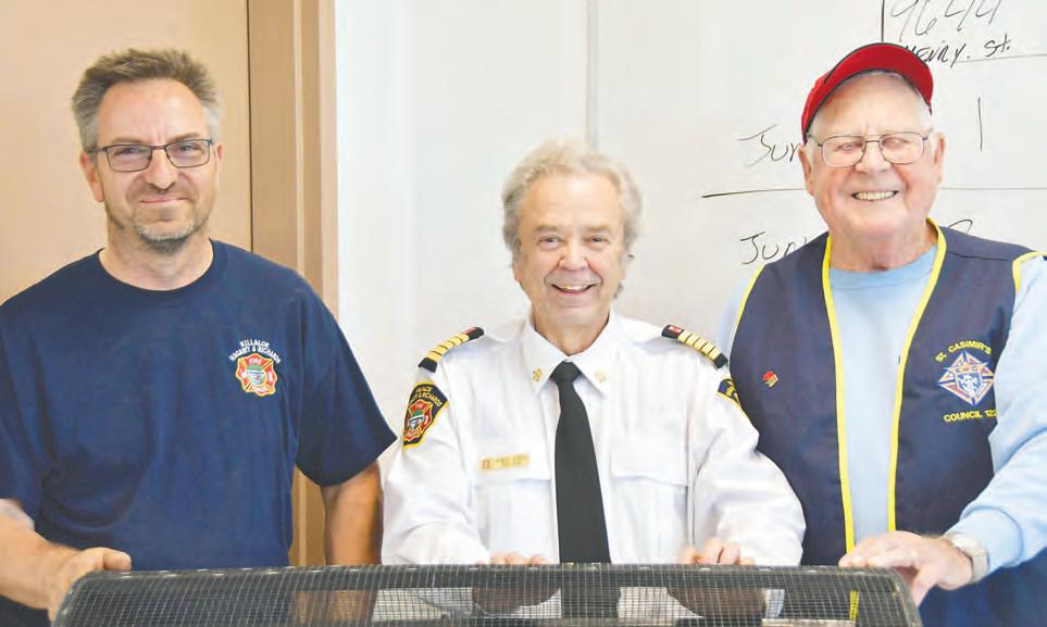 The Killaloe, Hagarty and Richards Firefighters’ Association and Knights of Columbus St. Casimir’s Parish at Round Lake Centre held their Riding Lawnmower Raffle on Saturday. Lyndon Coulas of Arnprior won the first prize of a Husqvarna riding mower and Dylan Borutski of Round Lake won the second prize of a batterypowered whipper snipper. Officiating at the draw were, from the left, Jim McClement, firefighter, Chief Bob Gareau and K of C member Bill Gardner.