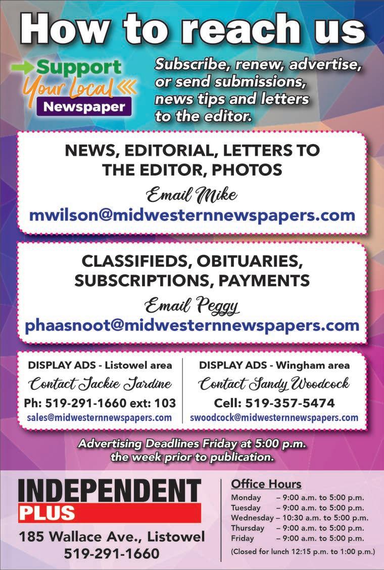 The Independent Plus is a member of the Ontario Press Council, an independent body set up by the newspapers of the province to uphold freedom of expression and deal with complaints from readers. The Press Council encourages complainants to first give the newspaper an opportunity to redress their grievances. If not satisfied, they may then write to the Council, enclosing a copy of material that is the subject of the complaint, at 80 Gould St., Suite 206, Toronto, Ont. M5A 4L8.