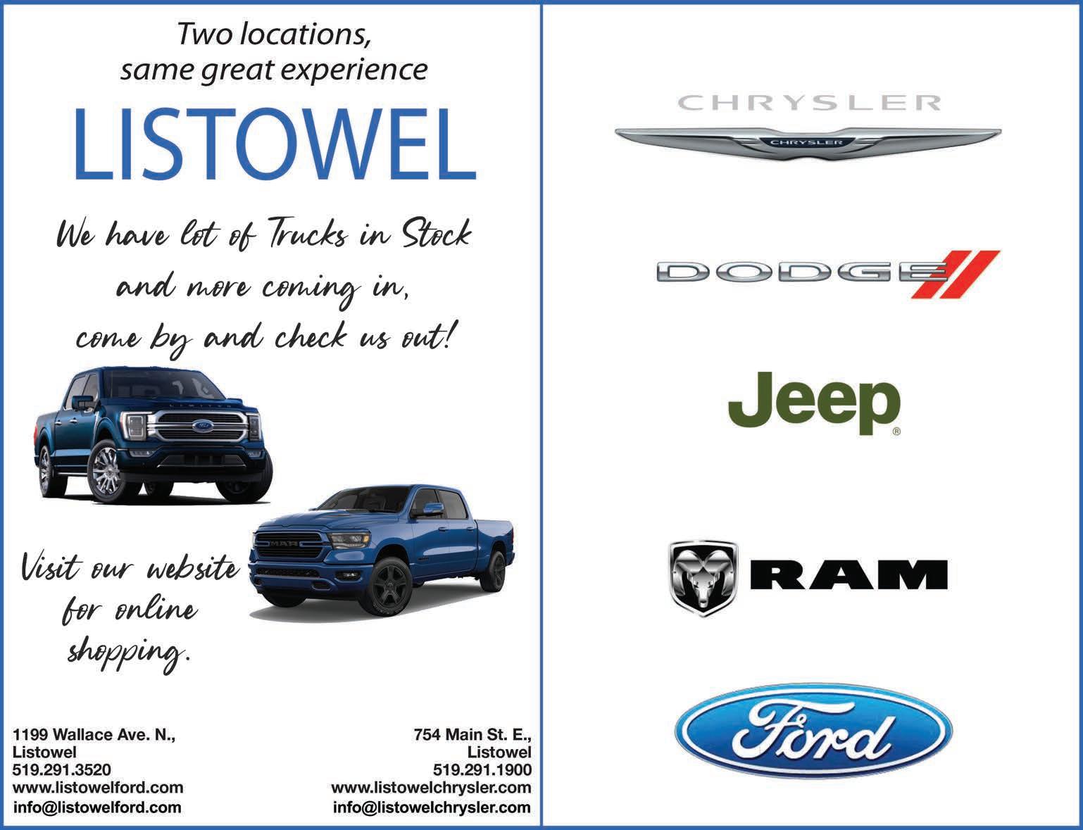 910 Wallace Ave. N., Listowel, ON 519.291.5757 Over 40 Years 3.6 L V 6 Cyl, L/220, Automatic, 4WD, 30,024km., , Stk #652041 +tax and licensing 2019 FORD EDGE SEL LEATHER NAVI SUNROOF 4WD $39,995 2019 RAM 1500 CLASSIC ST 4X4 CREW CAB 5’7” BOX 1-4 2.0L, Automatic, 16,805km, 10/7 mpg, Stk #37743 STOP23.COM PICKS OF THE WEEK $33,995 +tax and licensing Automatic transmission, I-4 2.0 L/122, 28,094km., Stk #C28184 $36,994 2018 CHEVROLET CAMARO 1LT 2 DR COUPE +tax and licensing