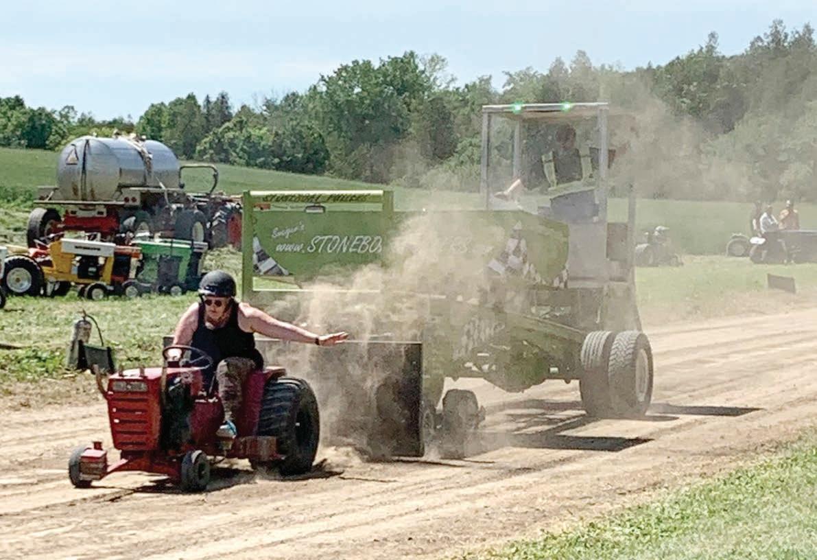 KICK THE DUST UP – The community of Bluevale was filled with the sounds of tractors, good conversation and music on Saturday as the Bluevale Community Committee hosted a tractor pull at the Bluevale Ball Diamond. Proceeds from the event will go to Bruce and CJ Casemore, who lost their home to a fire recently. The tractor pull took place in the afternoon with 16 different classes, followed by live music from Johnny Borton in the evening. There was also a beer tent and food booth. Pictured: Walkerton’s Sandra Speers takes a rip down the track, leaving a trail of dust in her wake.