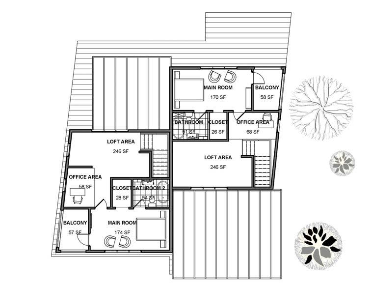 SECOND FLOOR 555 ft 2 scale 1/16” = 1’-0”