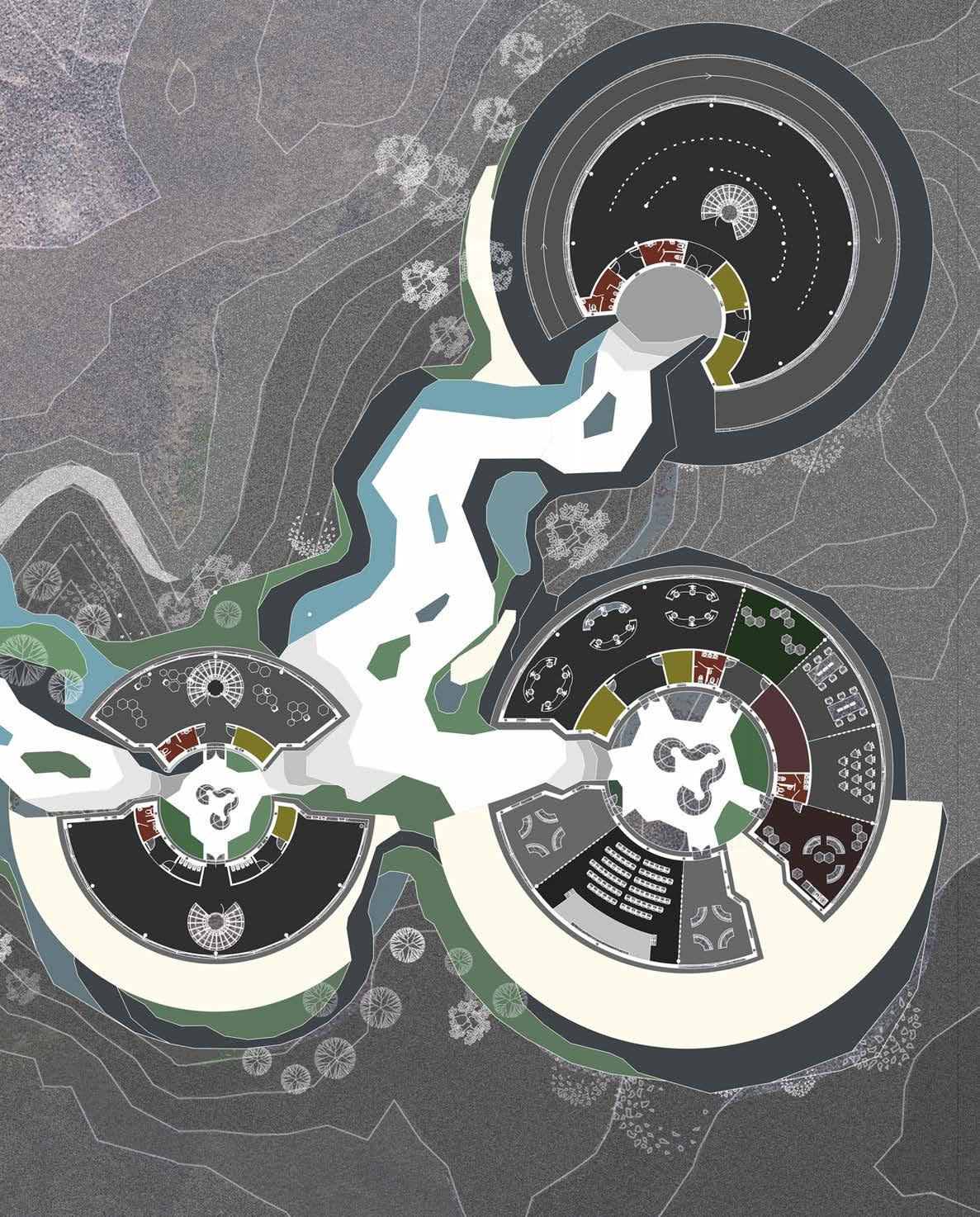The typology of the building consists of three important spaces: the first part of the building is a public exhibition, the second is semi-private, and the third space in the middle serves as the artery of life of the museum; a place of gathering, enjoying nature and celebrating water. The Water Museum introduces innovative methods of water purification, collecting water samples from rivers and lakes around the world, preserving water heritage, providing educational and entertainment programs to establish a new culture of water and fostering a new relationship between humanity and water, reconnecting people with the tangible and intangible aspects of this element, including its social, cultural, ecological, artistic, and spiritual dimensions.