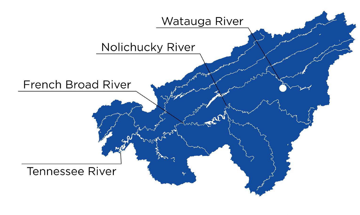 There are nearly 200 miles of rivers in the Upper Tennessee River Watershed, including the Watauga River, Nolichucky River, and French Broad River.