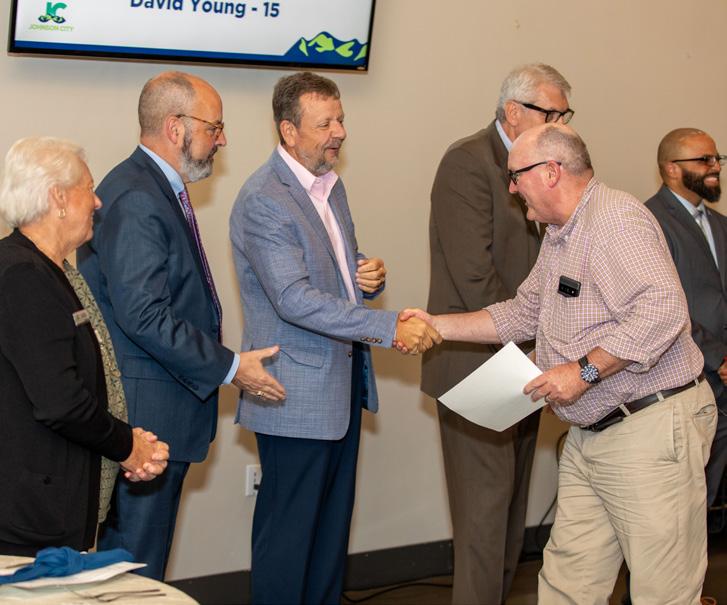 On Aug. 10, employees gathered at The Heritage in Jonesborough for a service recognition banquet. After a hiatus of three years, the result of COVID-19, the Employee Service Award Banquet returned to honor employees who have served the City and their community for 10 or more years. To reward employees for their tenure, City leadership