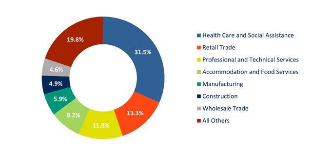 • 31.5% of Study Area workers are employed in the healthcare and social assistance industry