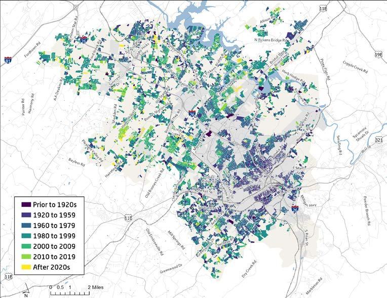 The Study Area has a higher share of houses built after 1990 (42.1%, compared to the MSA (39.9%) and Johnson City (38.2).