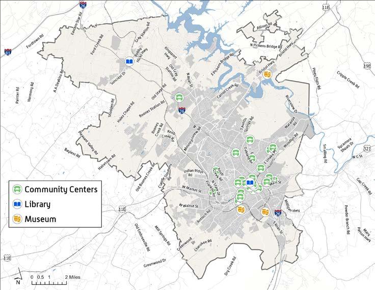 The Study Area is home to 3 libraries—including the Johnson City Public Library, 33 community centers, and the Reece Museum. The Johnson City Public Library is located in Downtown Johnson City and opened to the public in 1999. It houses a physical collection of more than 130,000 books, audiobooks, magazines, and DVDs and circulatesmore than 450,000 items per year to the community.