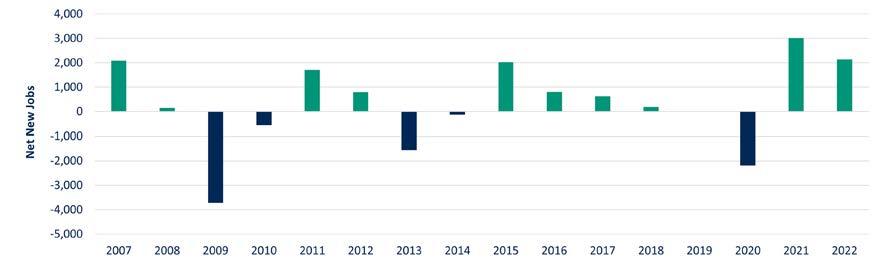 Johnson City is part of a dynamic region that is working to bring new jobs and support existing industry. Following the 2007-2009 Great Recession, the region added an average of 550 jobs per year. Consistent with national trends, the region was impacted by the onset of the COVID-19 pandemic, but experienced rapid recovery in 2021 and 2022, adding more than 5,000 new jobs back into the local economy.