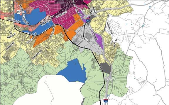 The key outcome of the plan is the Future Land Use Map, which guides future growth and development in Johnson City. A series of planning themes support the land use strategy: