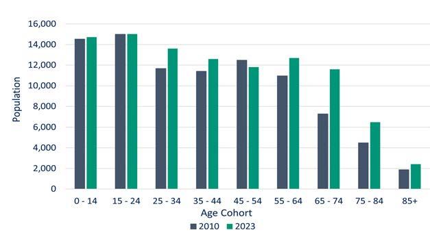 The median age in the Study Area is 40.4 years, compared to 43.3 in the Johnson City MSA. The Study Area’s older population is growing faster than other age cohorts. Approximately 32.9% of Study Area residents are 55 years or older. Many seniors desire alternate housing options, such as more affordable single-family homes or retirement communities. The largest age cohort group in the Study Area is residents under the age of 25, representing almost 30% of the population. The needs of a young population include: