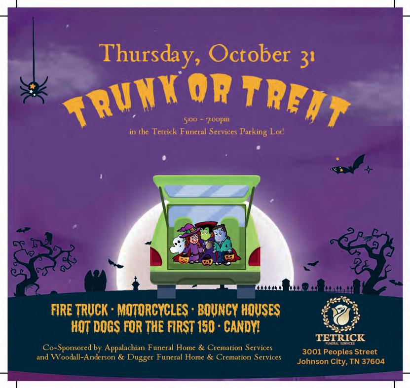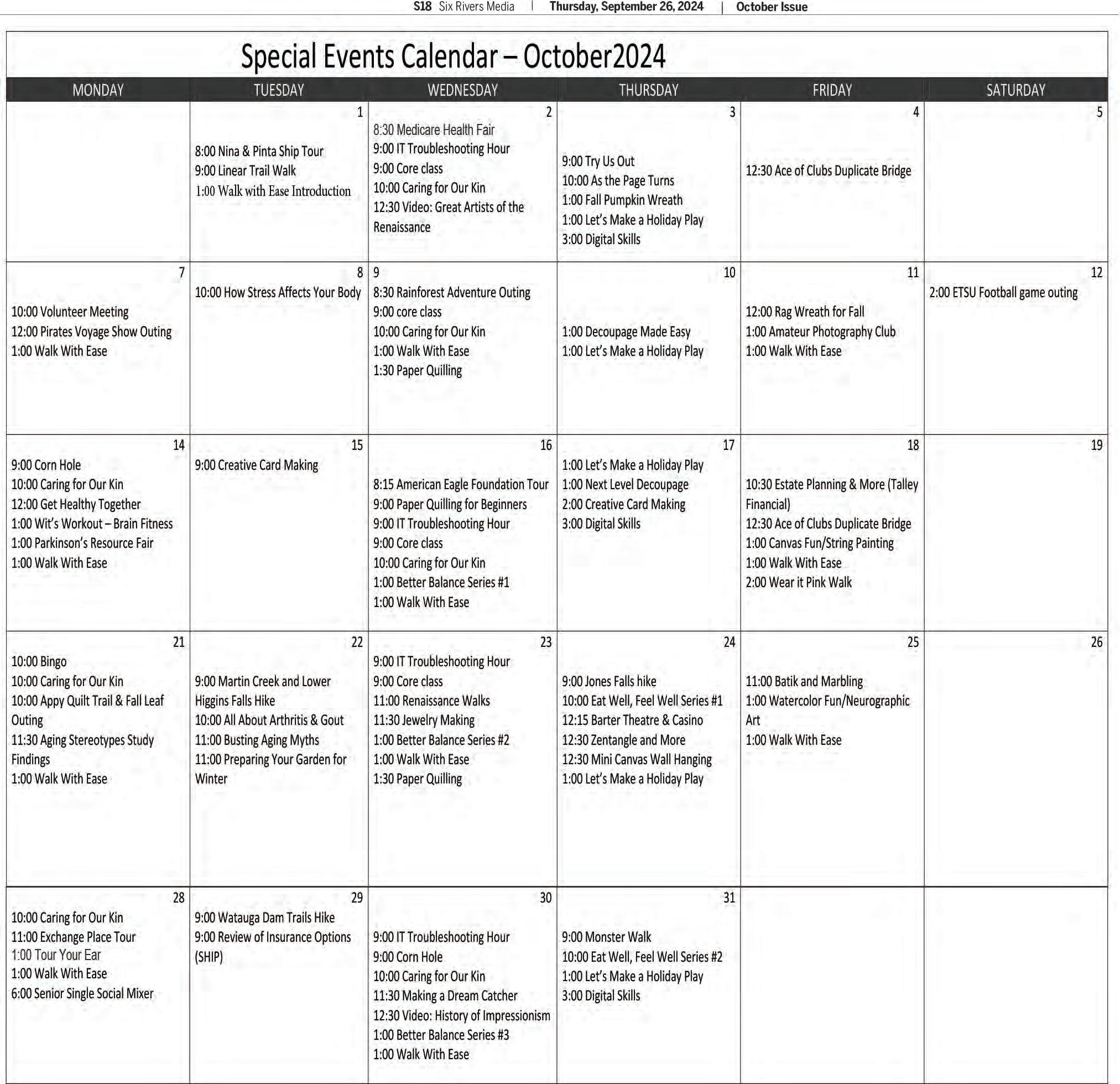 Monday, October 21st, 11:30-1:30pm Dr. Erin Mauck from ETSU Department of Community and Behavioral Health will be presenting her findings from her Aging Stereotypes Study from this past year. A light lunch will be provided. Please pre-register by October 17 by calling 423-434-6237.