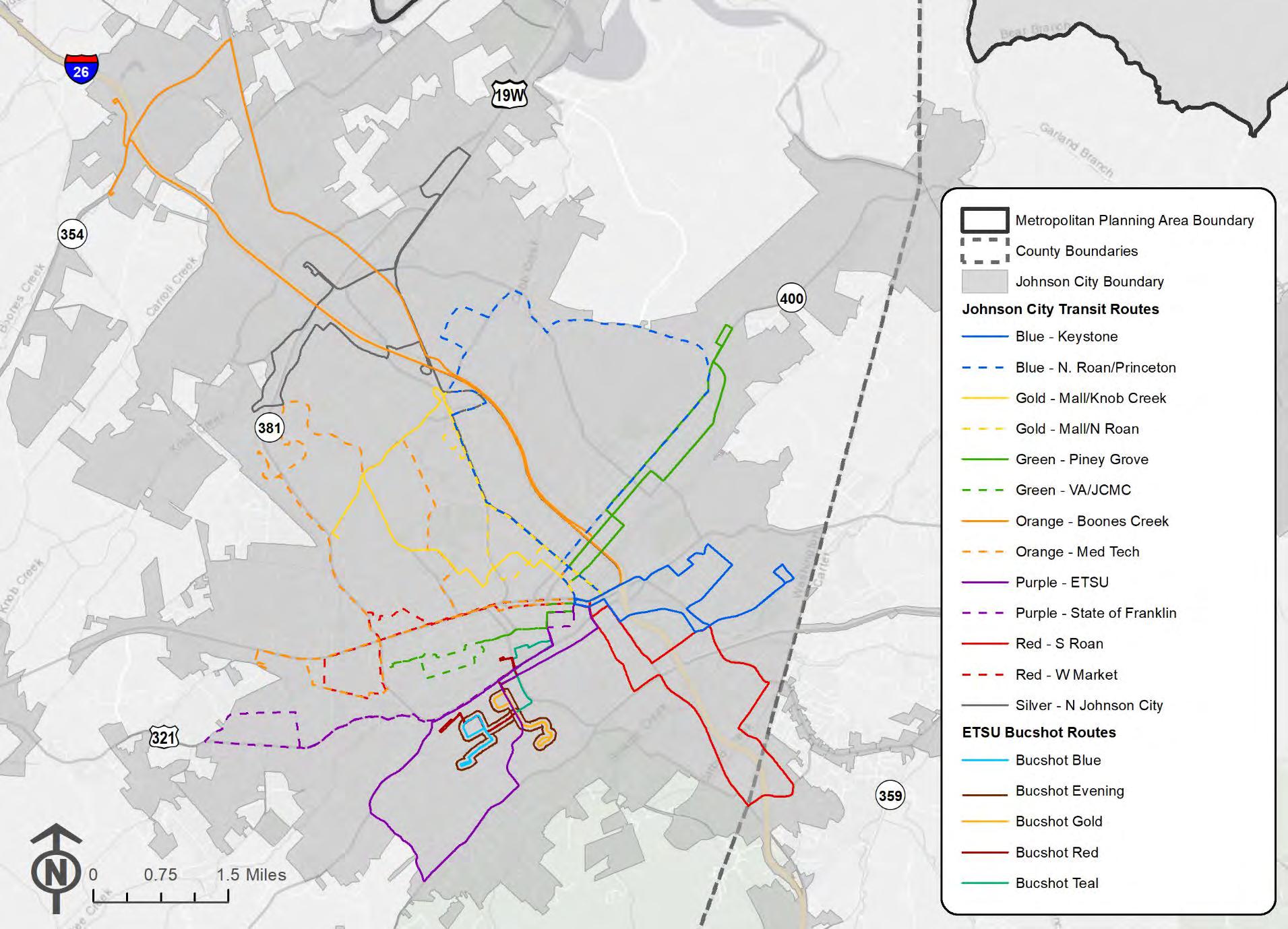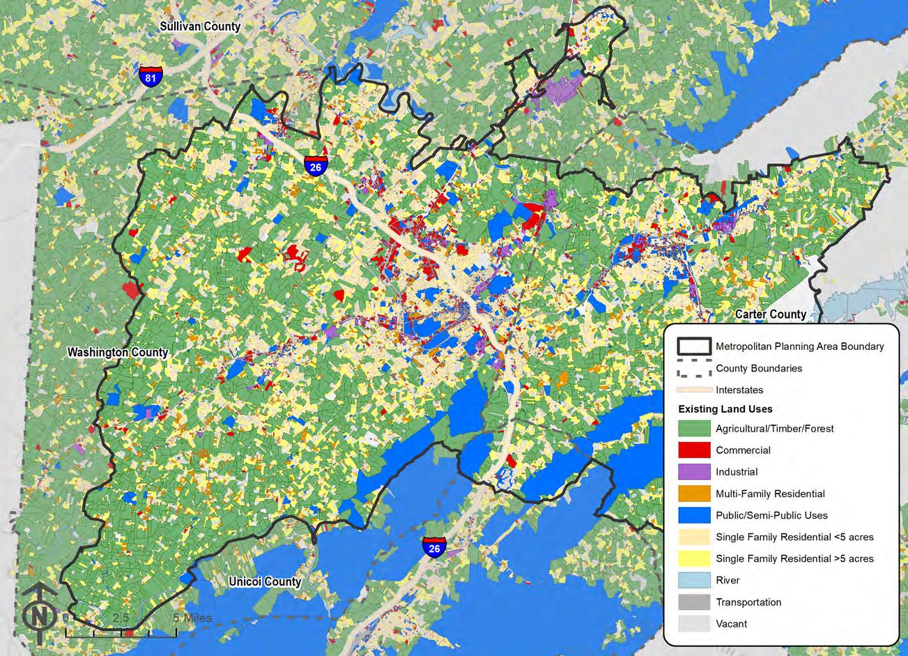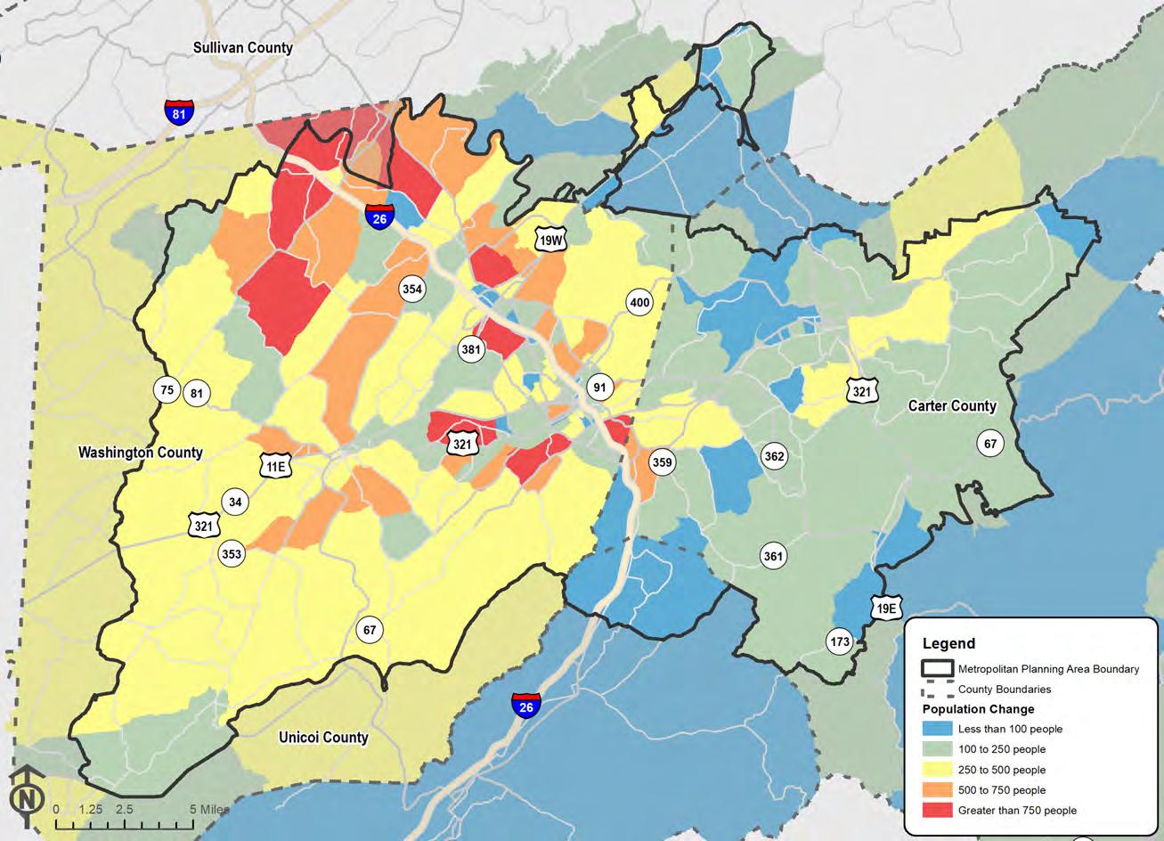 An MPO is a policy-making organization focused on transportation that is composed of local government representatives, Federal and State officials, public transit providers, and other transportation officials, as well as local engineers and planners. Urbanized areas as defined by the U.S. Census Bureau with populations greater than 50,000 people are required to have an MPO to ensure that federal transportation funding is apportioned appropriately and aligned with planning processes that meet federal and regional goals. The Johnson City MTPO plans for and approves the use of transportation funds within its planning area for highway, transit, bicycle, and pedestrian projects. The MTPO’s planning area includes the region’s urbanized area and other areas that may become urbanized in the next 20 years (Figure 1-1).