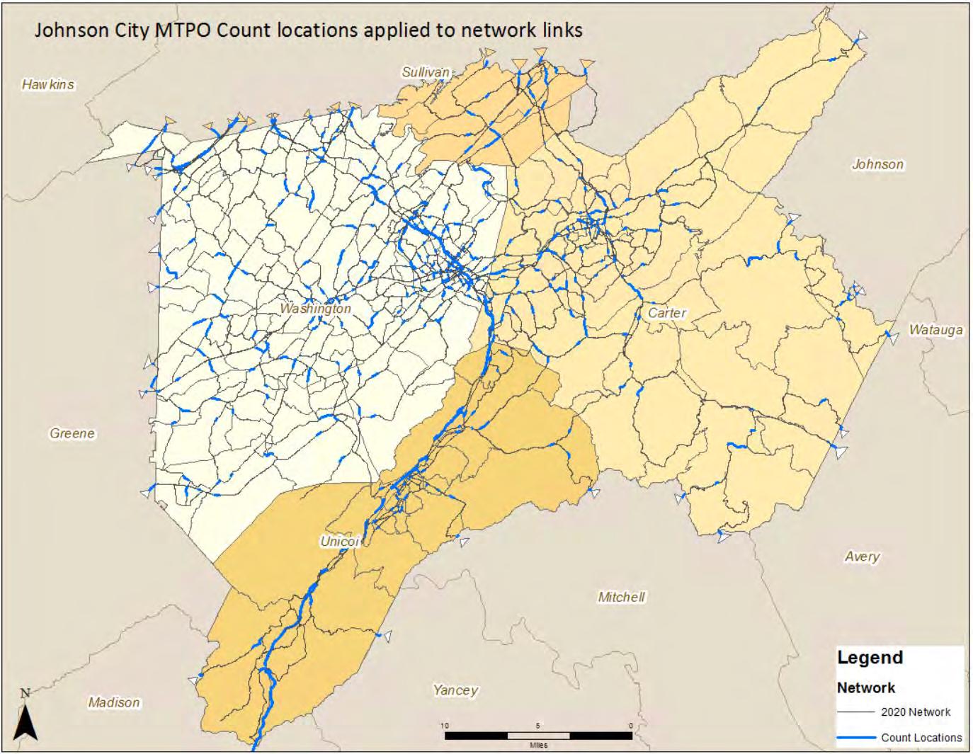 The model has been updated with network and socioeconomic data and then validated to meet the criteria from FHWA and the TDOT guidelines. The travel demand model sufficiently models travel behavior as observed with count data from the TDOT TN TIMES traffic count database.