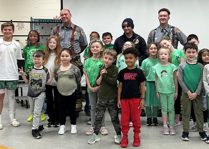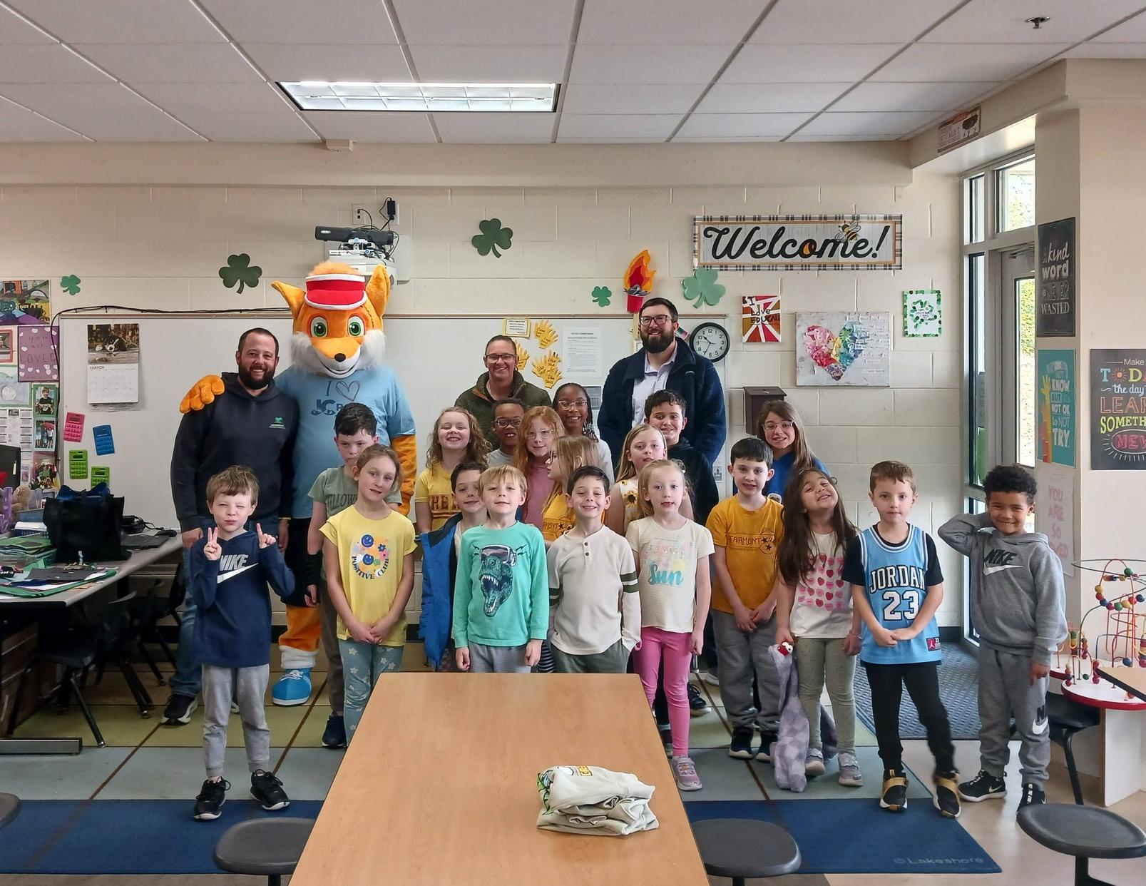 students, talking to the class about the different parks and facilities offered throughout Parks and Recreation, its upcoming special events, and summer camp programs. The visit also featured a surprise appearance by Frankie the Fox (Kevin Brown), with each student receiving a pair of sunglasses and the chance to take photos with the Parks and Recreation mascot.