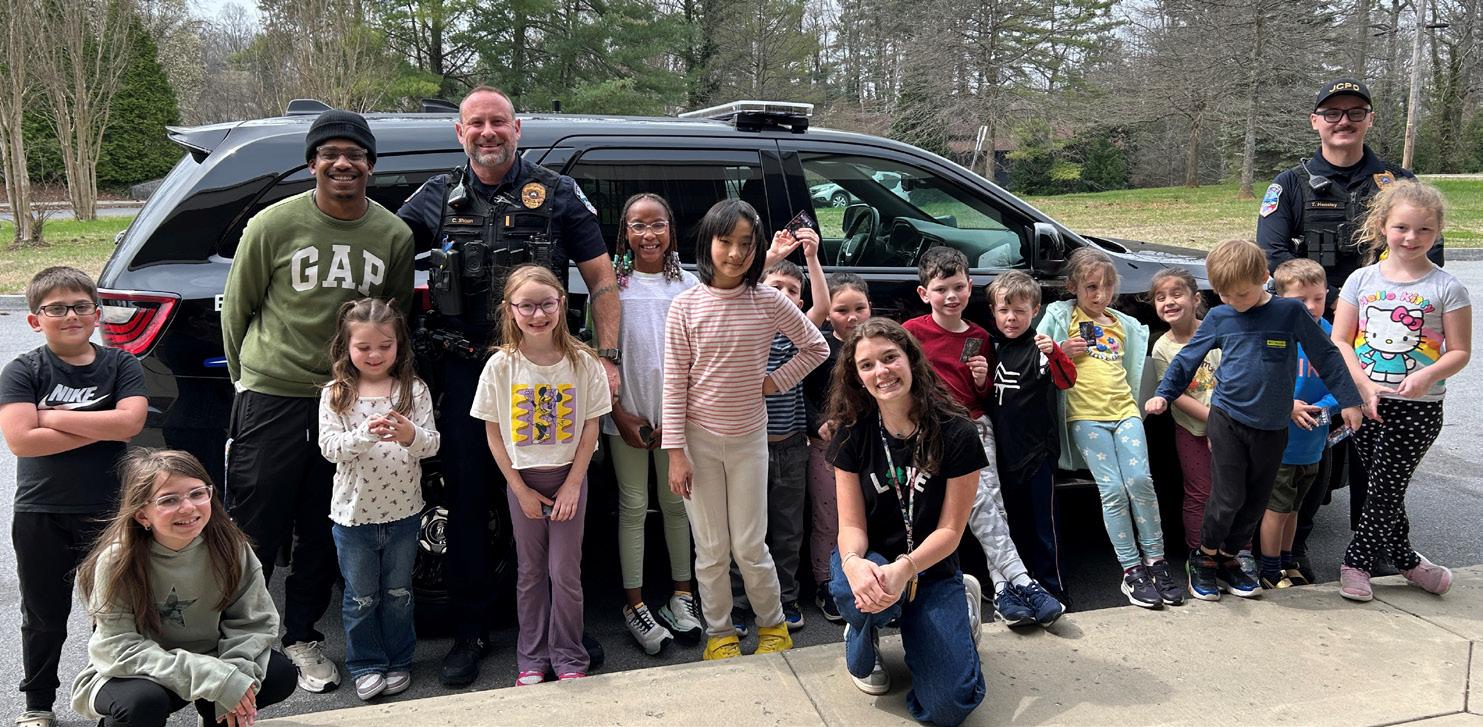 Police officers discussed their role in keeping our community safe and gave students an up-close look at their patrol vehicles. The highlight of the visit was K9 Buck, JCPD’s electronic storage detection dog, who demonstrated his ability to sniff out technology before interacting with students.