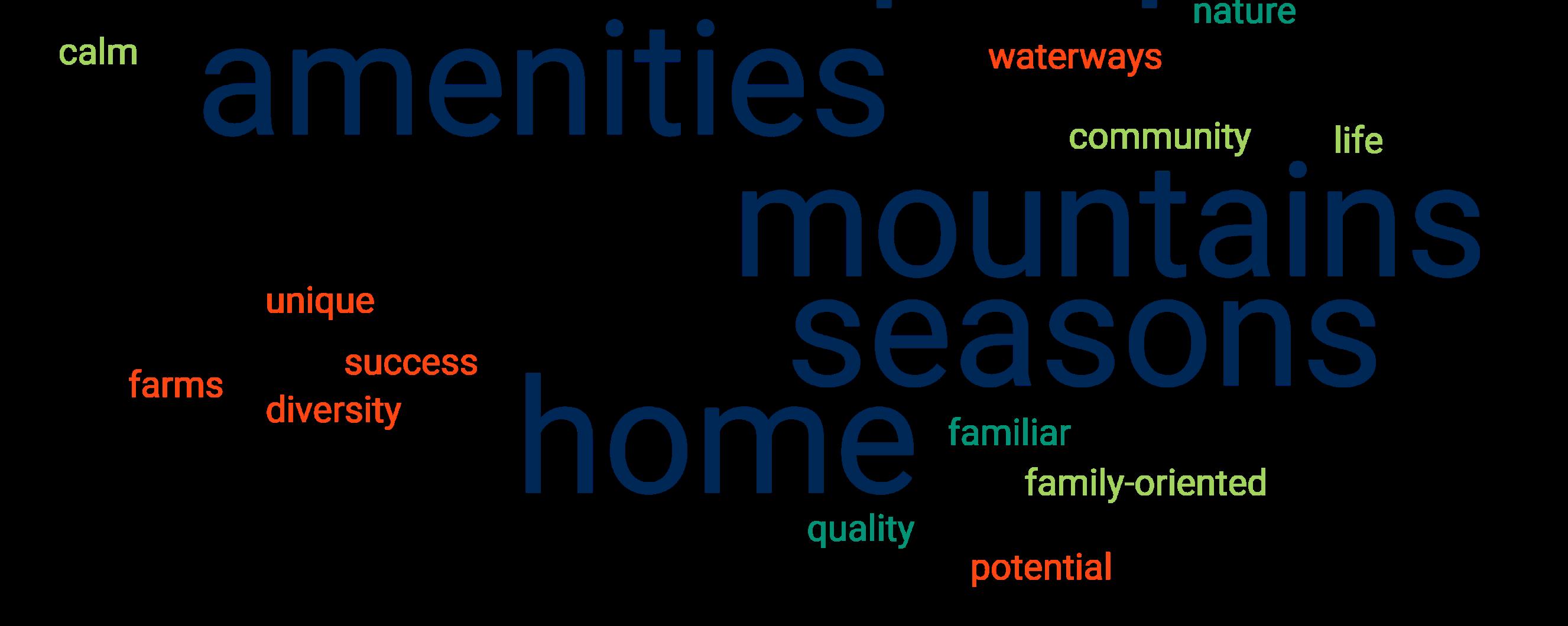 Participants provided 57 thoughtful responses to the prompt “In 2045, I envision Johnson City to be…” Themes included:
