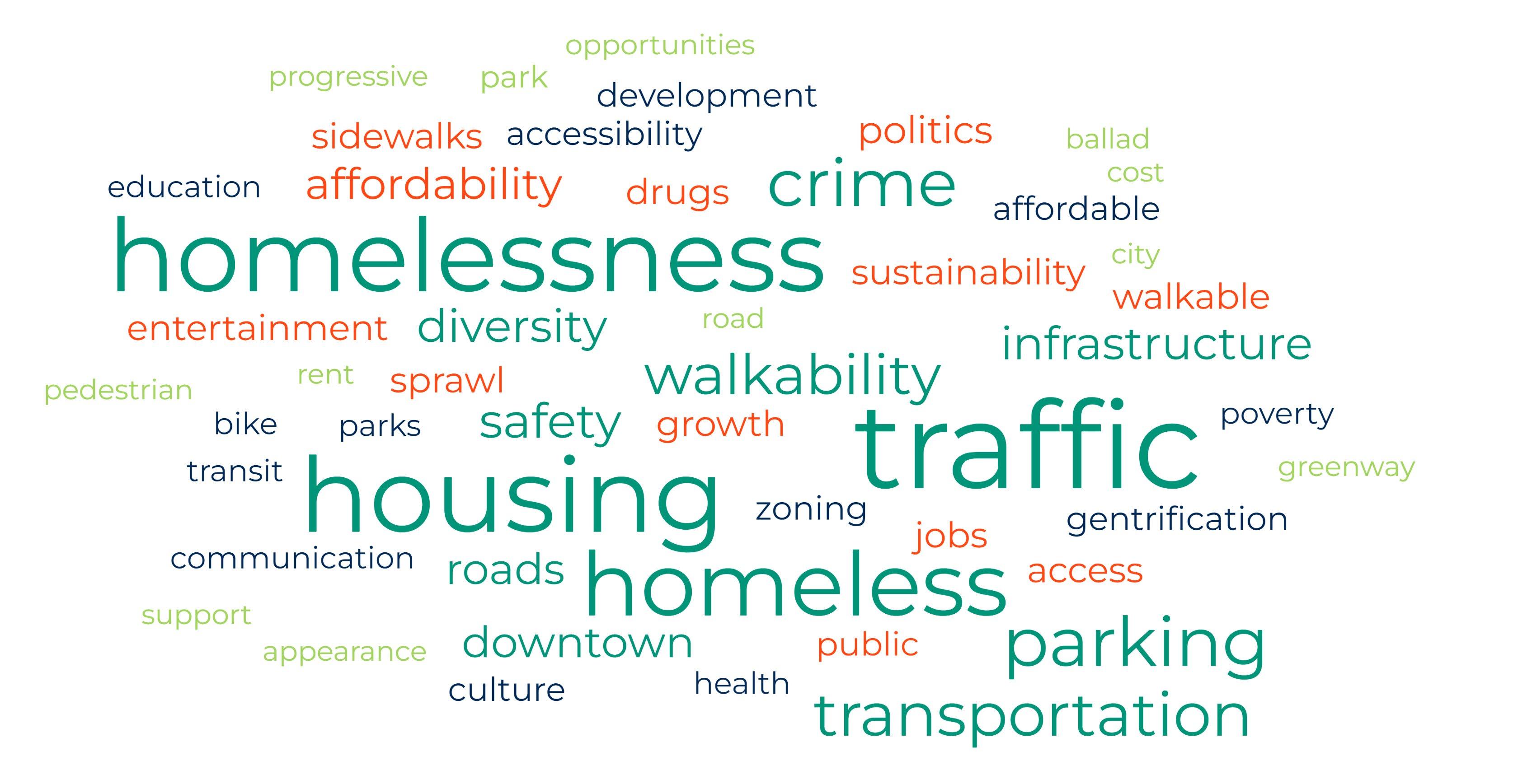 • Many are concerned about the prevalence of traffic, homelessness, and crime in Johnson City