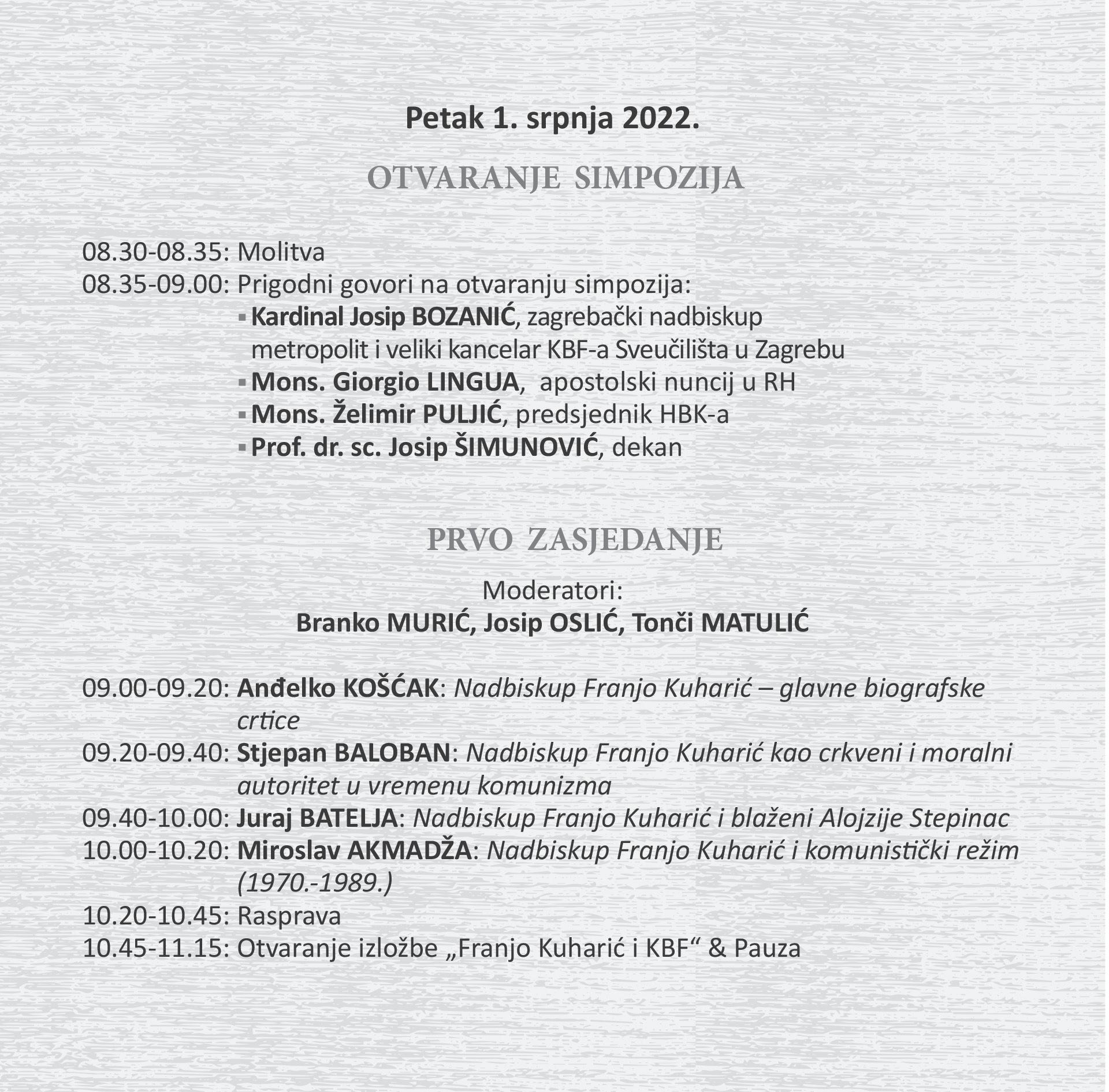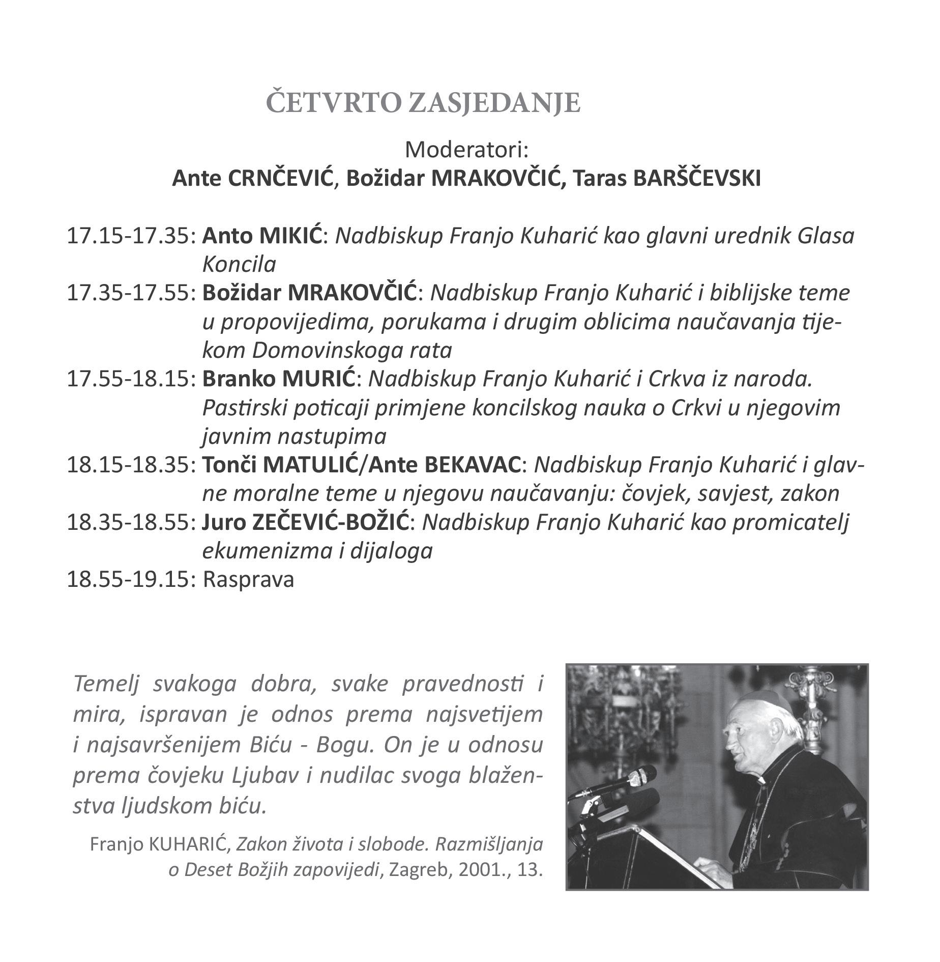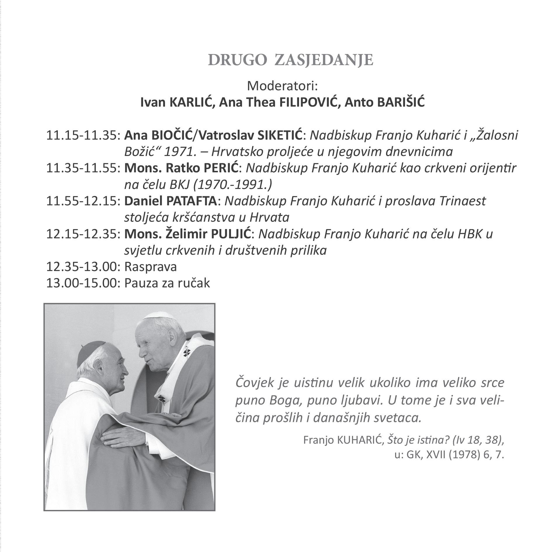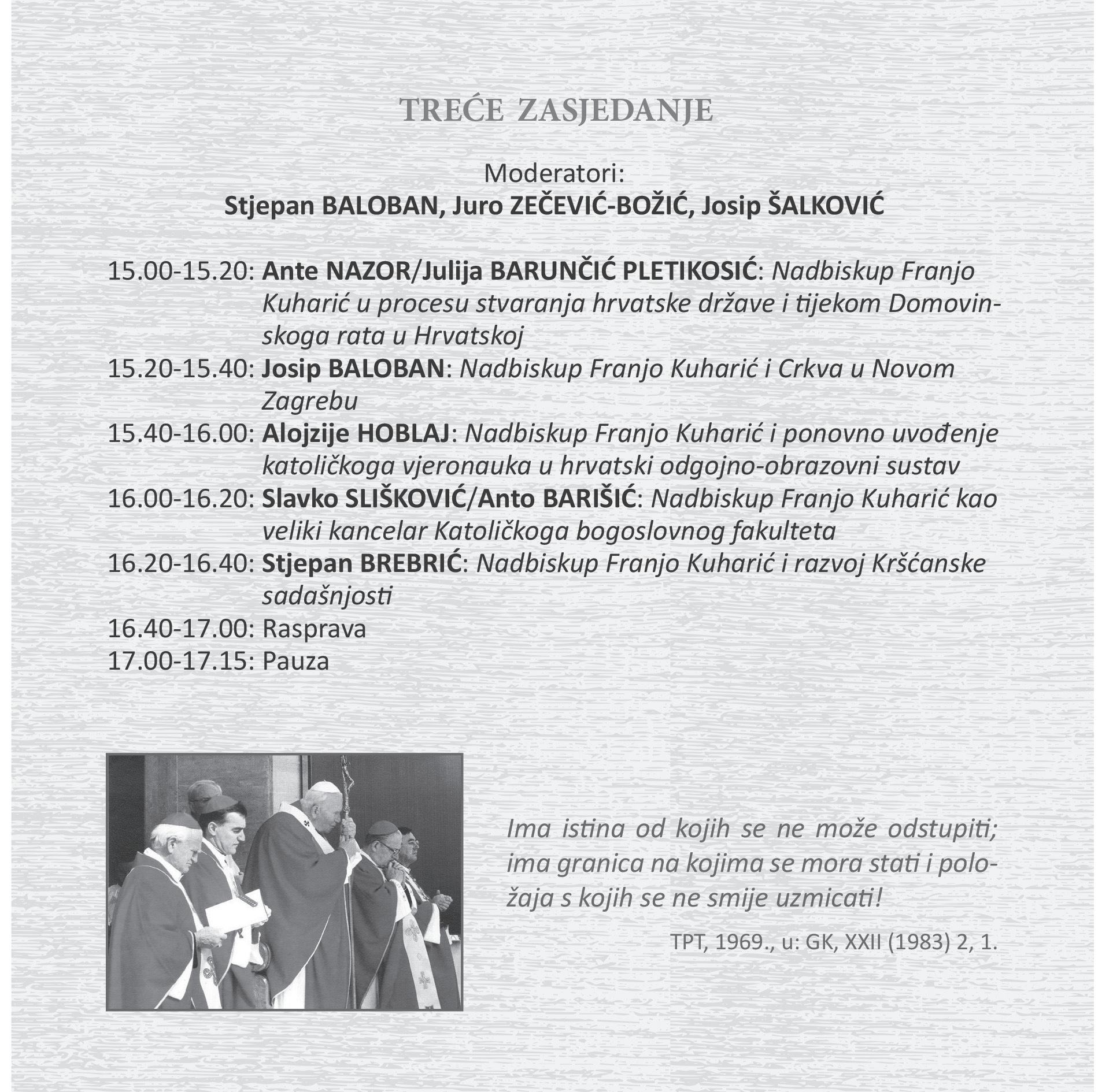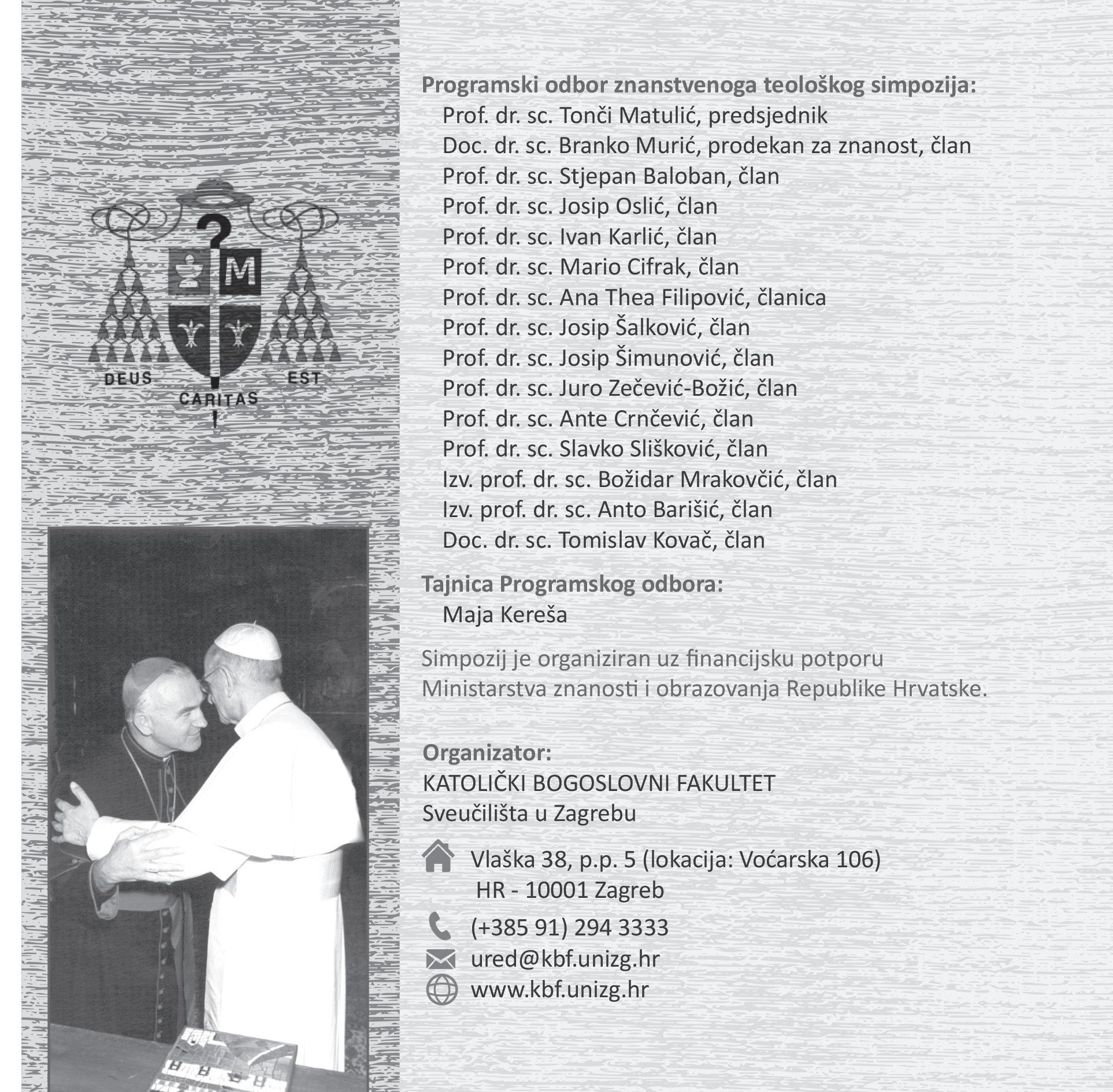 Zahvaljujem našem Katoličkome bogoslovnom fakultetu Sveučilišta u Zagrebu na inicijativi i organizaciji Znanstvenoga teološkog simpozija „Život i djelo kardinala Franje Kuharića“.