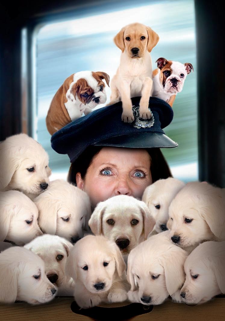 I kłopoty nadeszły bardzo szybko. Coś zaczęło się poruszać w torbie konduktorki. Po chwili wyszedł stamtąd szczeniak rasy bokser. Wyglądał miło, ale kobieta patrzyła na niego, jakby był jadowitą kobrą. Nie zdążyła mu się przyjrzeć, bo drugi kłopot wyskoczył z kieszeni jej munduru. Tym razem był to malutki labrador, który zaszczekał piskliwym głosikiem.