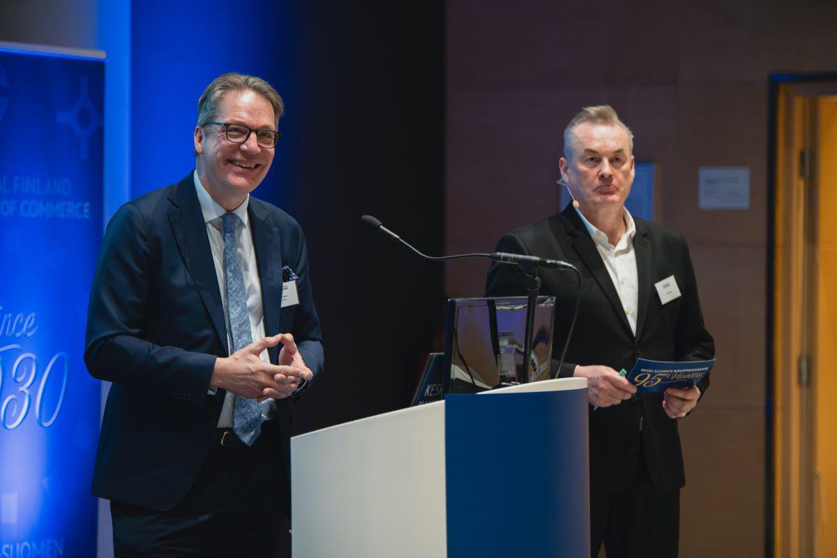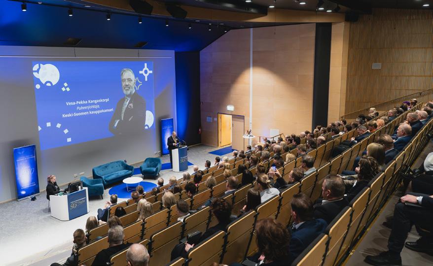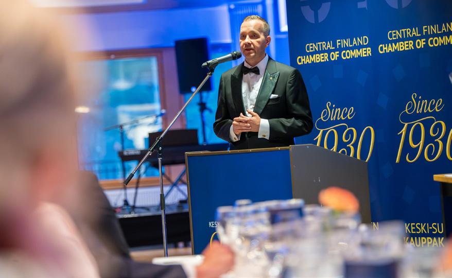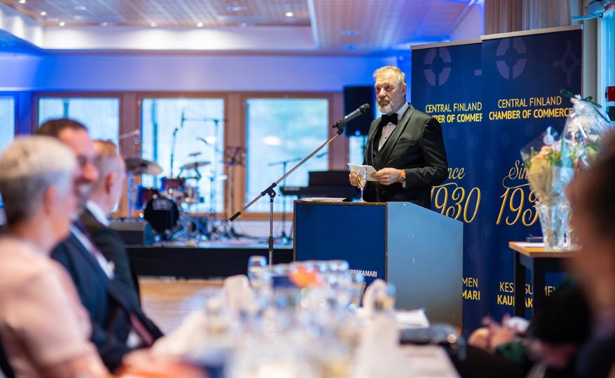 Keski-Suomen kauppakamarin puheenjohtaja Vesa-Pekka Kangaskorpi kertoi juhlapuheessaan Keski-Suomen kauppakamarin historiasta ja merkityksestä.