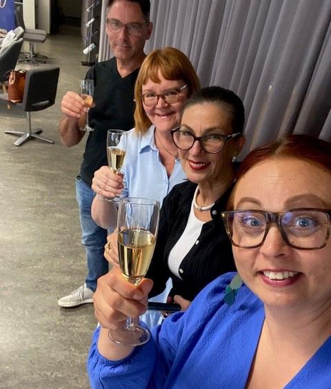 Kuvassa Keski-Suomen kauppakamarin henkilöstö vasemmalta alkaen palvelupäällikkö Pia Naukkarinen, koulutuspäällikkö Tuula Rahikainen, toimitusjohtaja Ari Hiltunen, markkinointisuunnittelija Merja Honkanen, viestintäpäällikkö Viivi Sakkara ja viestintäsuunnittelijana 30.4. asti toiminut Antti Innanen.