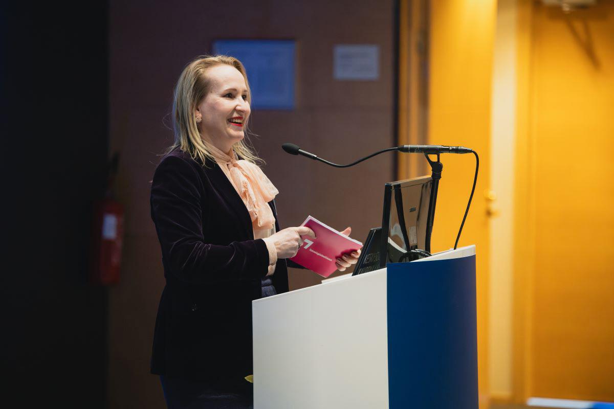 Teknologiateollisuuden toimitusjohtaja Minna Helle piti puheenvuoron aiheesta teknologiavienti, resilienssi ja uudistuminen – menestyksen avaimet muuttuvassa geopoliittisessa ympäristössä.