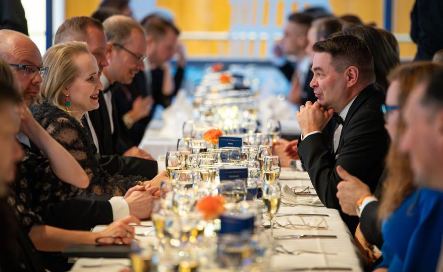 Arvovaltaisten puhujien saattelemana juhlijat nauttivat hyvästä ruoasta, musiikista ja tanssista.