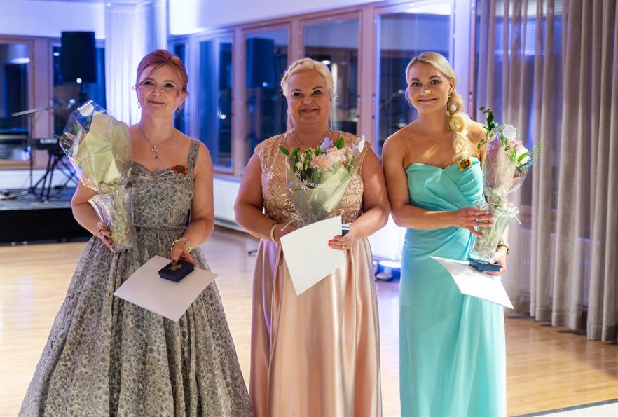 Keski-Suomen kauppakamari myönsi kolmelle työntekijälleen Keskuskauppakamarin ansiomerkit korvaamattomasta työpanoksestaan kauppakamarin toiminnan ja Keski-Suomen elinkeinoelämän hyväksi. Keski-Suomen kauppakamari palkitsi ansiomerkein viestintäpäällikkö Viivi Sakkaran (oikealla), markkinointisuunnittelija Merja Honkasen ja palvelupäällikkö Pia Naukkarisen. Ansiomerkkien myöntämisperusteena on työurien kesto: Sakkara ja Honkanen ovat työskennelleet Keski-Suomen kauppakamarissa kymmenen vuotta ja Naukkarinen viisi vuotta.