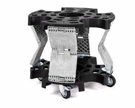 360° schwenkbare Hinterräder ermöglichen – auch voll belastet – gutes Handling Direkt gesteuerter Auslöser für optimale Sicherheit beim Absenken