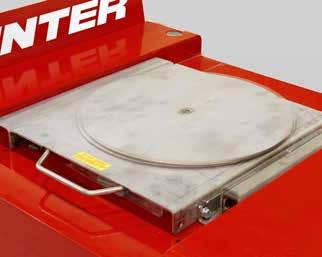 Widerstandsfähige, zuverlässige Drehteller aus Edelstahl. Integrierte Schiebeplatten ermöglichen die Einstellung der Hinterachse
