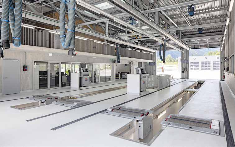 Die Anforderung: Die Grube und die Prüfgeräte mussten so angeordnet werden, dass alle Bus-Typen in jeder Grösse und Länge bei geschlossenen Toren vollständig geprüft werden können. Ein Muss war auch die integrierte Grubenabdeckung, welche nach jedem Prüfvorgang elektrisch geschlossen wird, um Unfällen vorzubeugen.