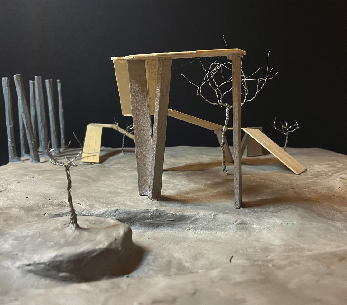 The structures were created to be consistent with the sun patterns to help with maximum plant growth and nutrients. They also gave different ways to interact with the peach trees, which was inspired by the Jantar Mantar in Jaipur. The ground of the site was inspired by Isamu Noguchi’s Contoured Playground. With the utilization of clay, creating mounds and contours in the model symbolize the soil for the tree saplings and the ground divots.
