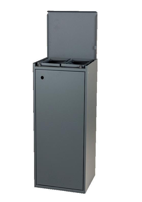 Denne vogn hører under kategorien Ergo Slimline. Til vognen medfølger 2 stk. 6 ltr. spand, samt skrå 60 ltr. affaldsstativ. Desuden medfølger også redskabsholder. Bundpladen kan med fordel bruges til evt. småopbevaring.