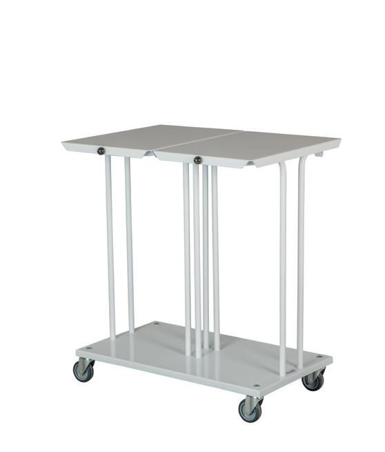 Denne vogn hører under kategorien Ergo Slimline. Til vognen medfølger 1 stk. plastbakke, hvori der sidder 2 stk. 6 ltr. spand. Yderligere medfølger 1 stk. plastbakke til diverse, 1 stk. skrå 60 ltr. affaldsstativ samt 1 stk. redskabs- & mopholder. Bundpladen kan med fordel anvendes til småopbevaring.