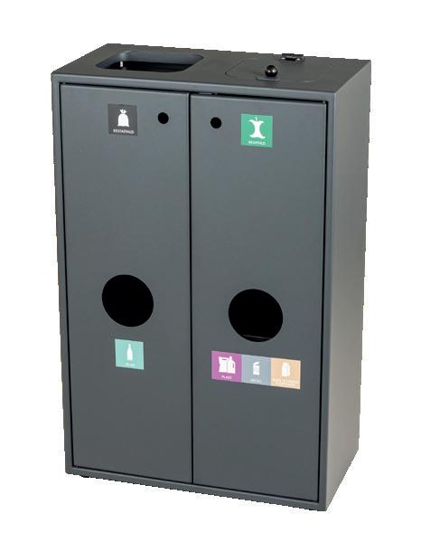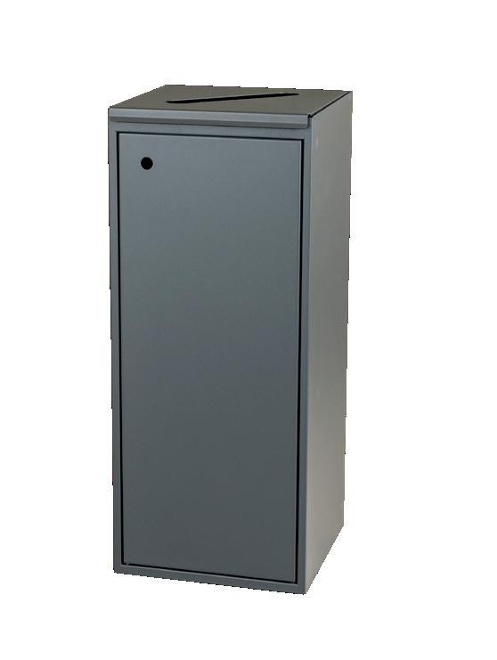Det komplette sæt med dispenser, stander og infotavle leveres enten i hvid eller sort pulverlakeret stål med tilhørende dispenser.