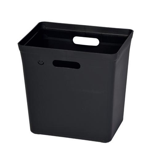 Beholderen er produceret i sort/grå pulverlakeret stål med en overflade i struktur. Den grå serie er produceret med softclose i låget. Posen fastgøres på to u-bøjler, som sikrer at denne ikke glider ned. Jo mere affald der smides ud des bedre fast sidder posen. Til enkelte beholdere bruges dog plastikspand, som i øvrigt er poduceret i 100 % genbrugsplast.