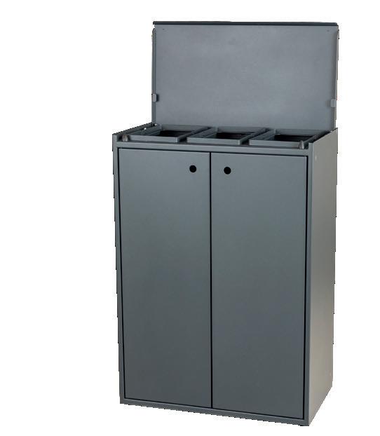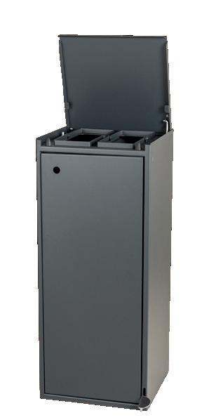 2 x 40 ltr. samt 1 x 20 ltr. affaldsbeholder m/indkast i både top og i låge på front.