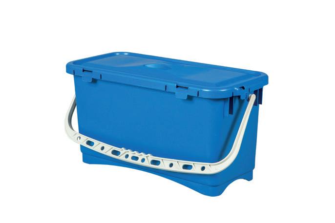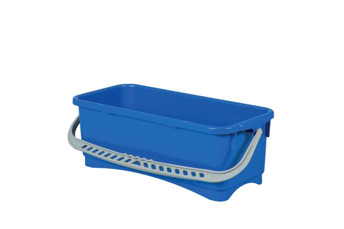 The trolley is supplied with 1 plastic tray containing 2 pcs. 6-litre buckets and 1 mop box.