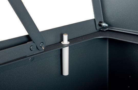The stainless steel holder is designed for 600 ml pump bottles but can just as easily fit other bottles. The top is made of two parts, and a lock can be attached to prevent theft or removal of the alcohol bottle.