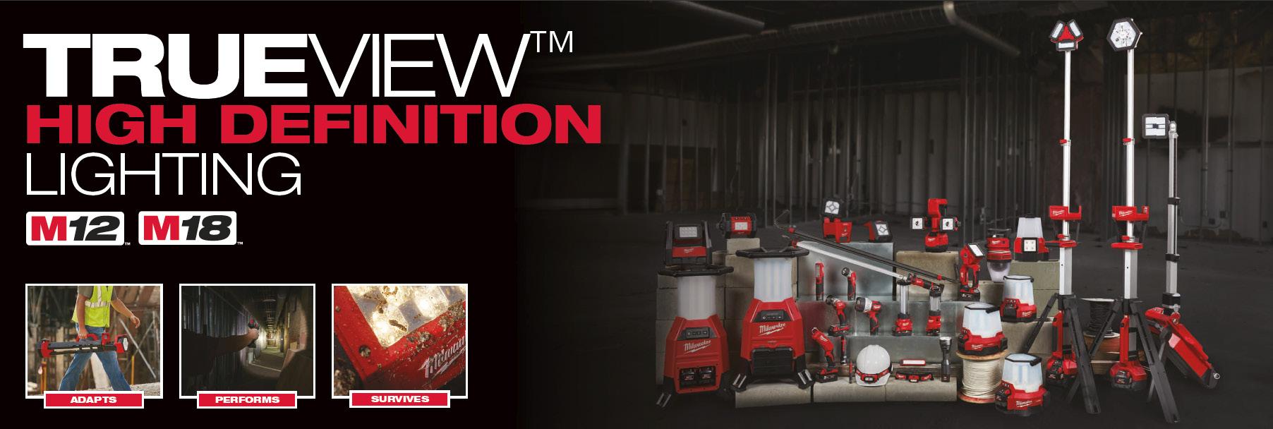 TRUEVIEW™ arbejdslys på op til 4000 Lumen. Op til 12 timers driftstid på et M18™ REDLITHIUM™ 5,0 Ah batteri. 120° roterbart lyshoved. 736,PRIS PR. STK. 920,- inkl. moms